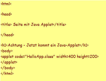 Dazu legen wir eine Html-Seite an und geben unseren Applet-Code mit