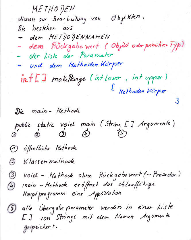 Die „Ausführung“ einer Klasse beginnt immer bei der öffentlichen Klassenmethode "main", deren Definition immer mit